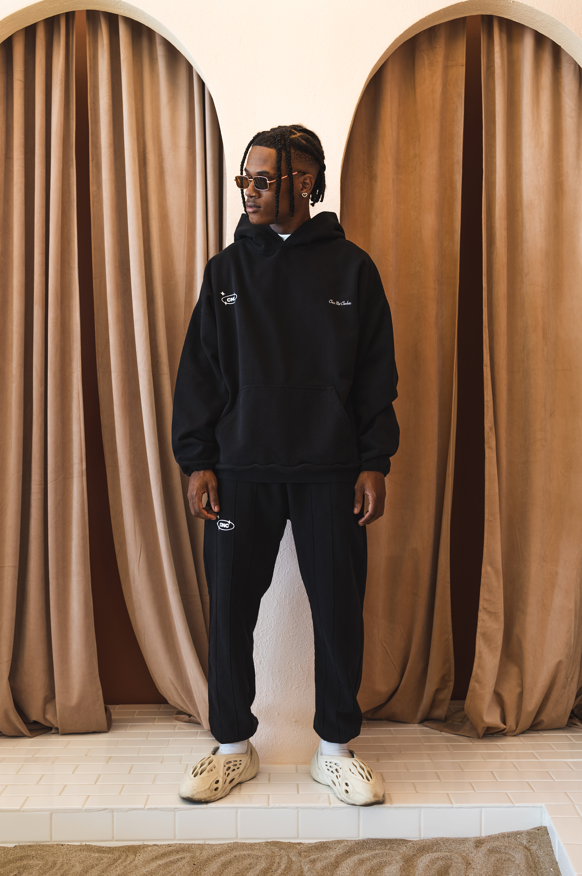 This pullover hoodie is proudly made in Los Angeles – from the fabric milling to the printing and sewing. Style with the matching pin-tuck joggers in ‘black sand’ for a coordinated look. The cotton is already preshrunken and washed prior to sewing & printing to minimise shrinkage.
