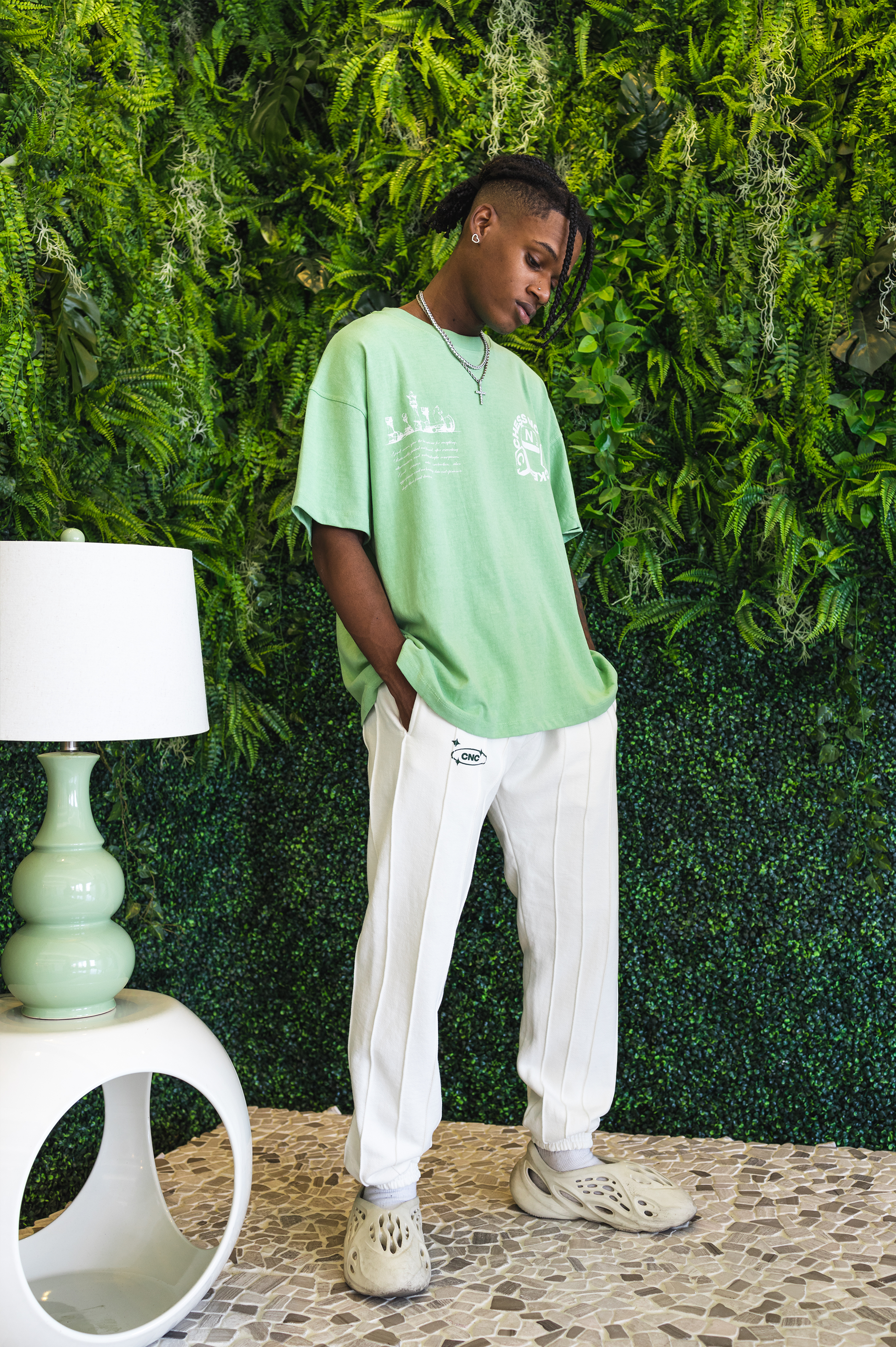 This t-shirt is proudly made in Los Angeles – from the fabric milling to the printing and sewing. Finish off your outfit with our coordinating pullover hoodie and joggers in ‘clematis blue’ for a three-piece tracksuit look.