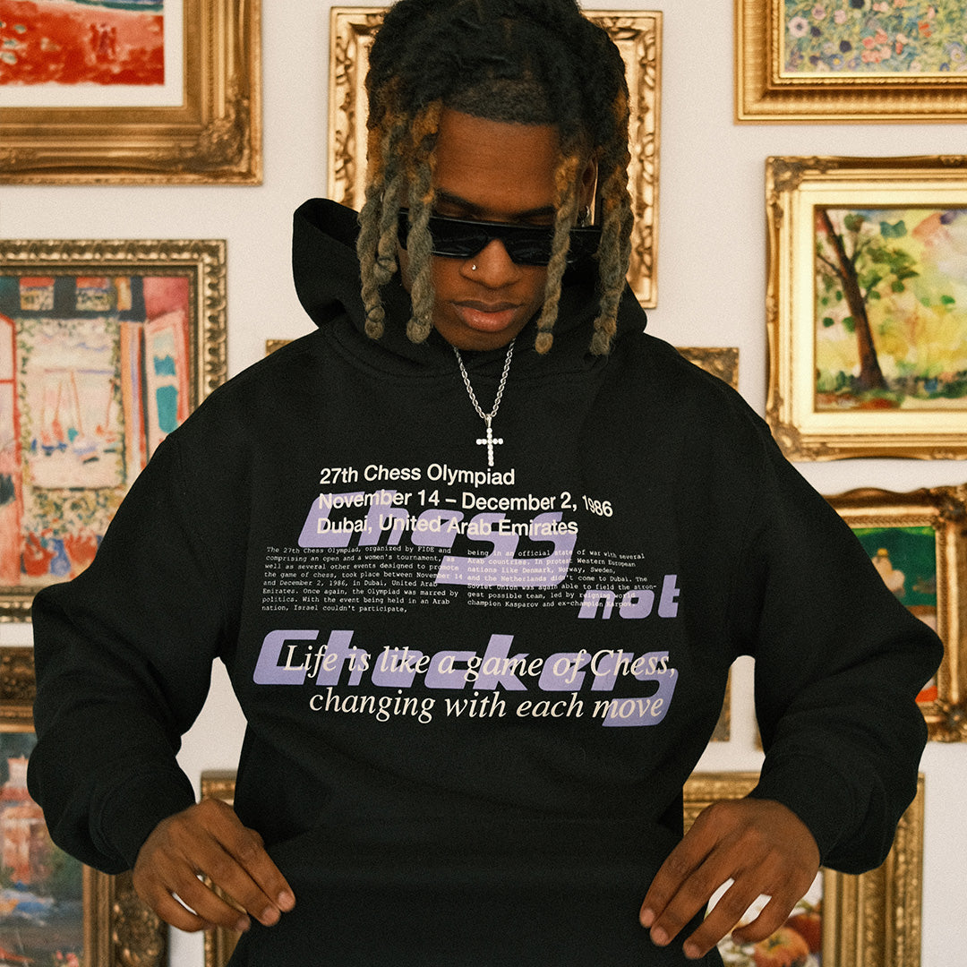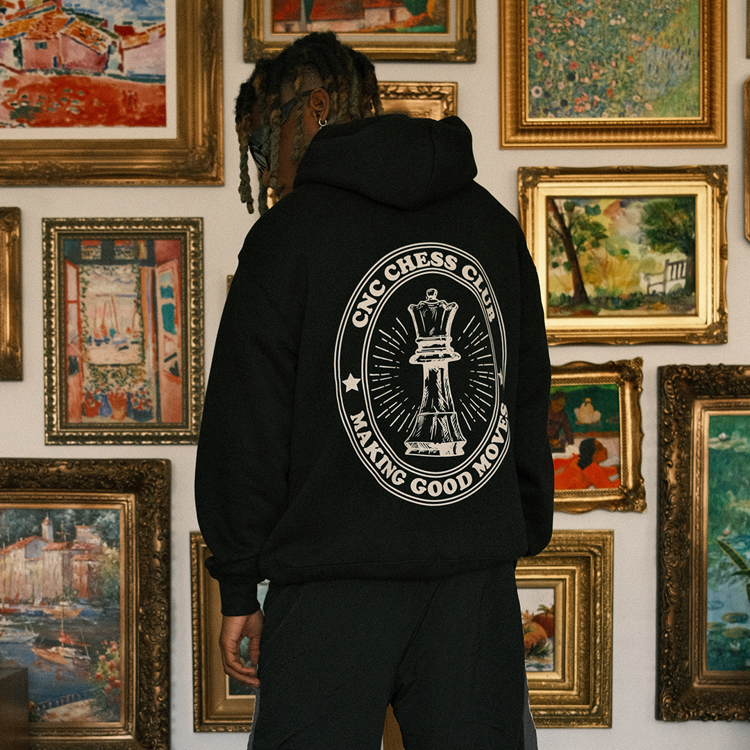 Introducing our Chess Club Hoodie in Jet Black - Following a facelift design from our first Chess Club print, this design has been well received from the first collection so we decided to come back with a newly facelift version.