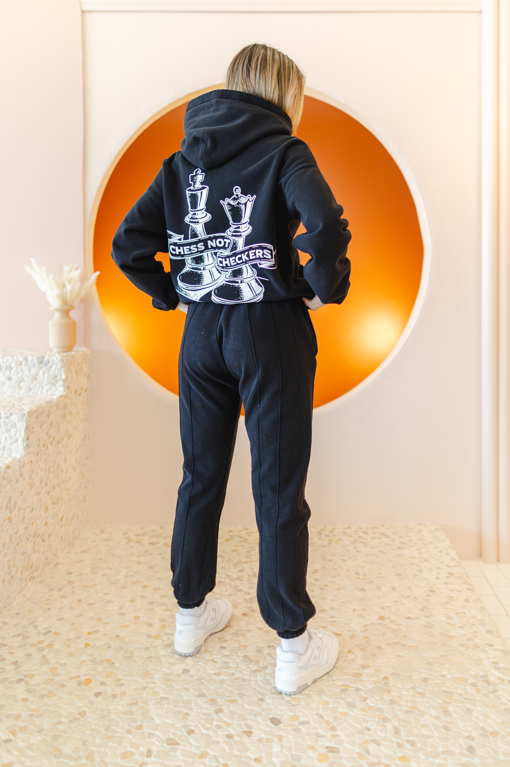 Elevate your everyday look with CNC’s Pin-Tuck Joggers in Jet Black. Designed for both style and comfort, these joggers feature a relaxed fit with an elastic waistband, ribbed cuffs, and deep front pockets for a functional yet modern silhouette. The CNC logo, screen-printed on the front, adds a subtle nod to streetwear, making these joggers the perfect blend of practicality and elevated style.