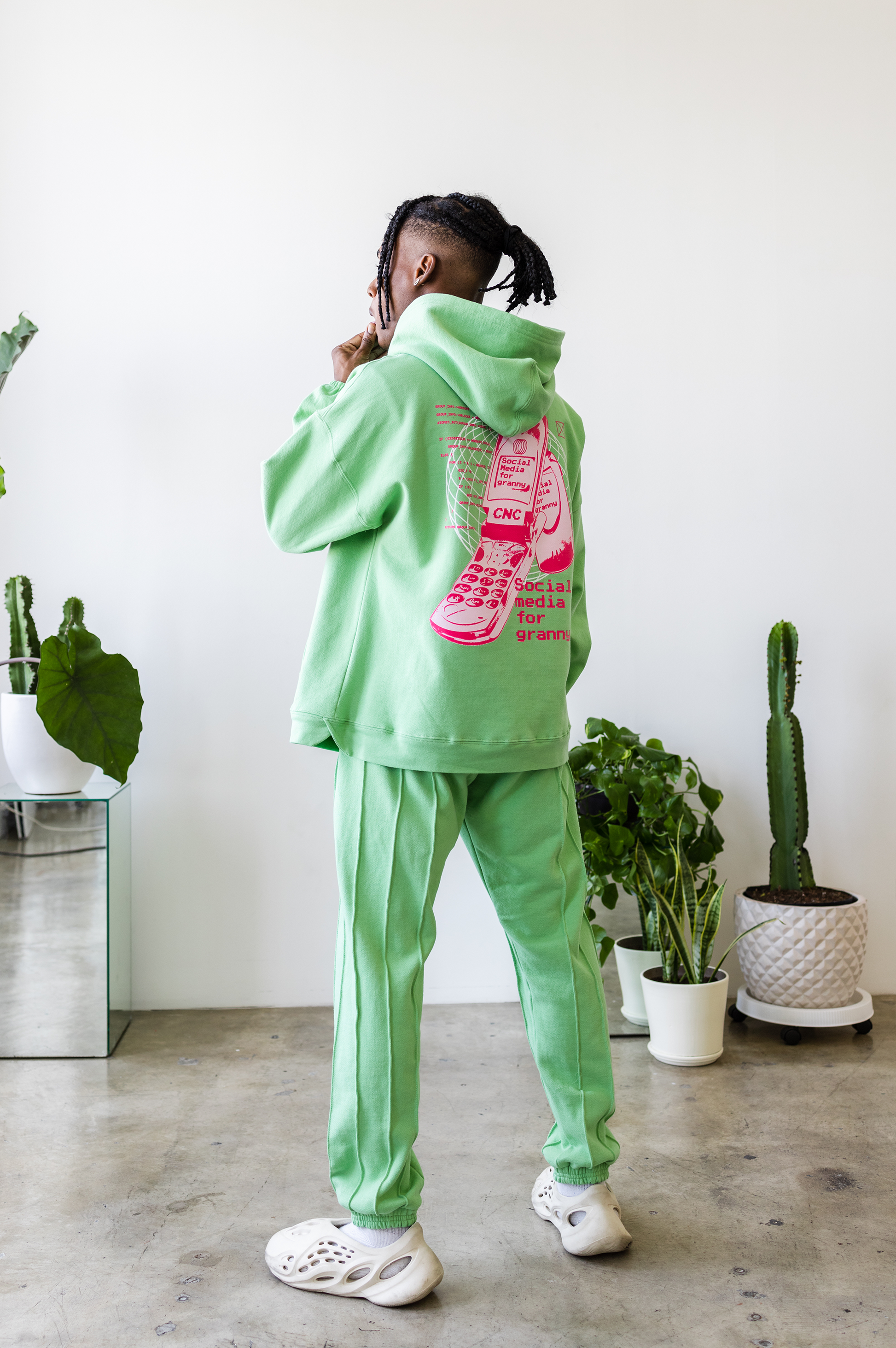 We’re throwing it back to the age of dial-up internet and flip-phones with our “social media for granny” design. It’s a sartorial must-have for the coding wizards, social media influencers, and digital entrepreneurs.