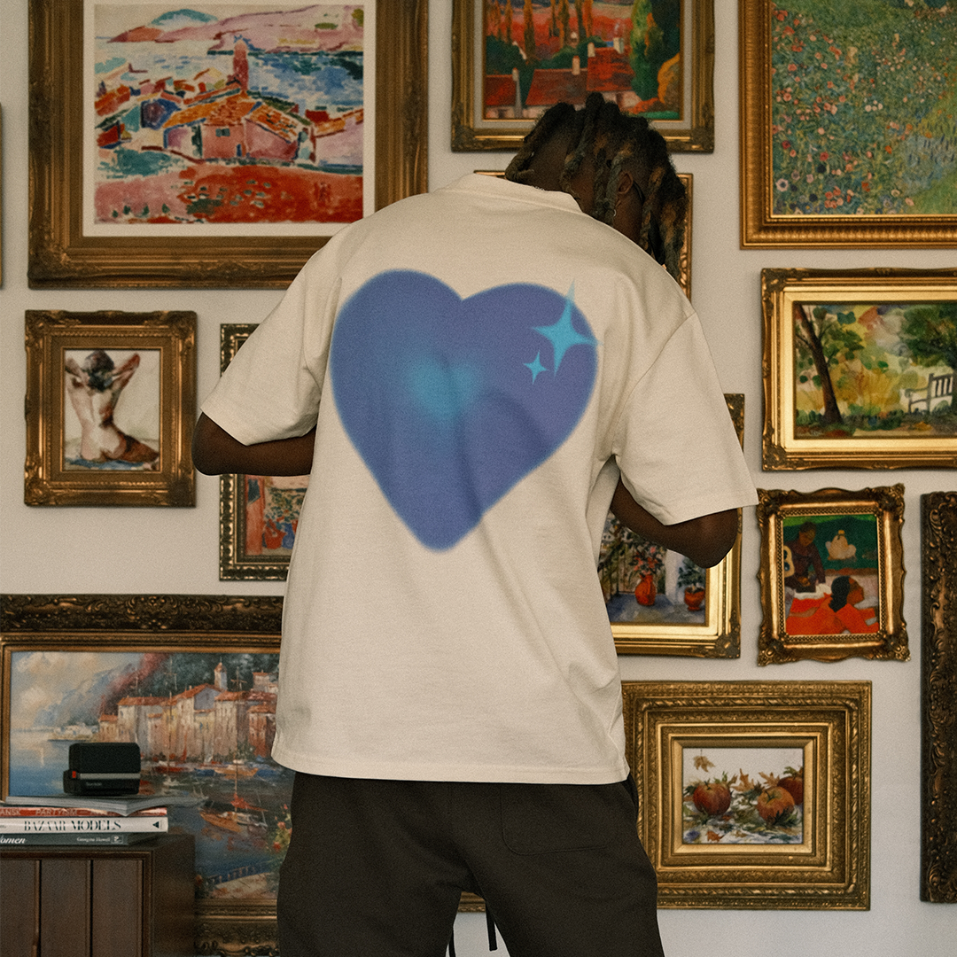 Introducing our "Pulse Love" T-Shirt – a generously oversized and boxy masterpiece with a thoughtfully designed firm collar. This extraordinary tee boasts captivating screen prints on both its front and back.