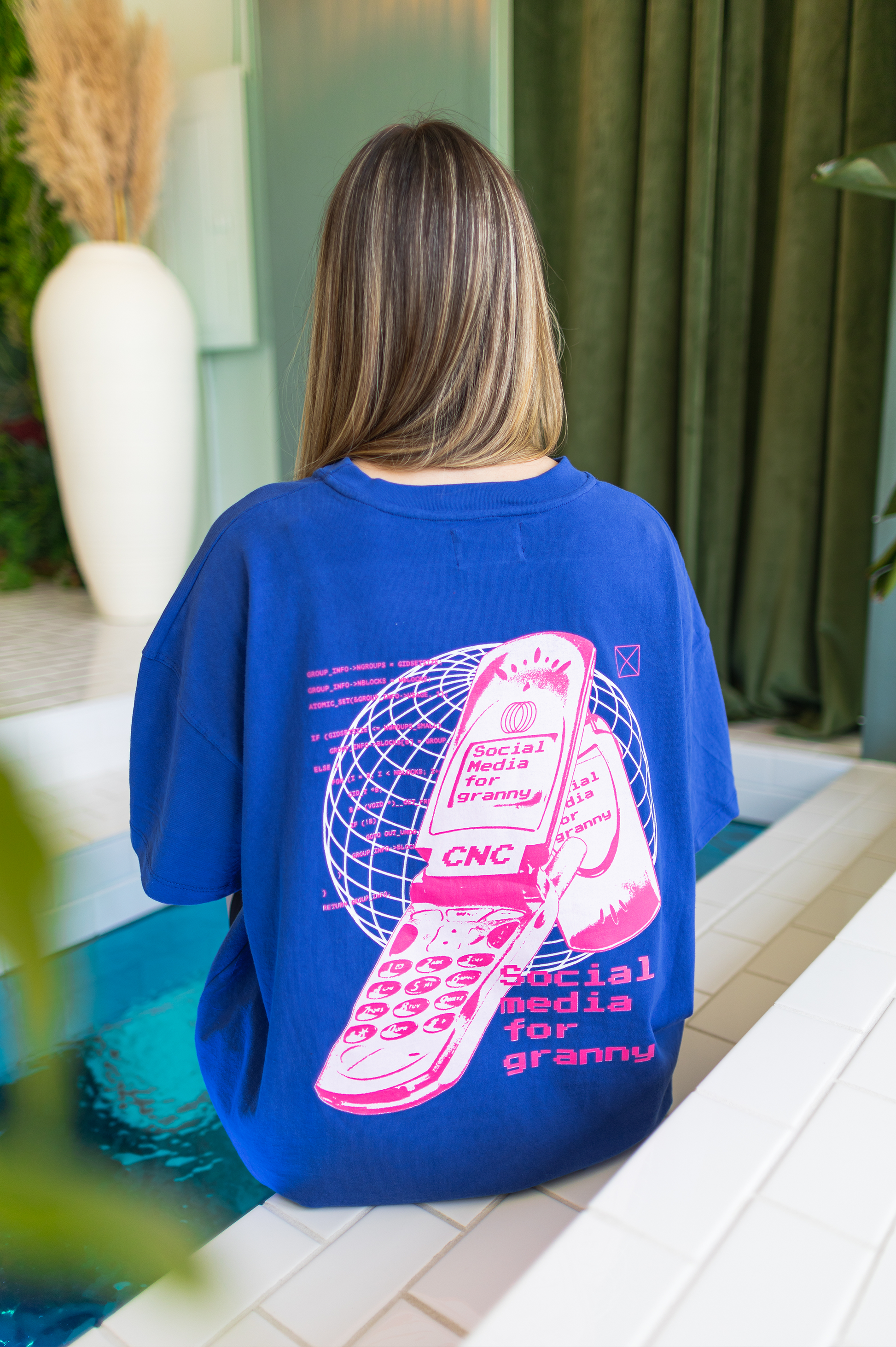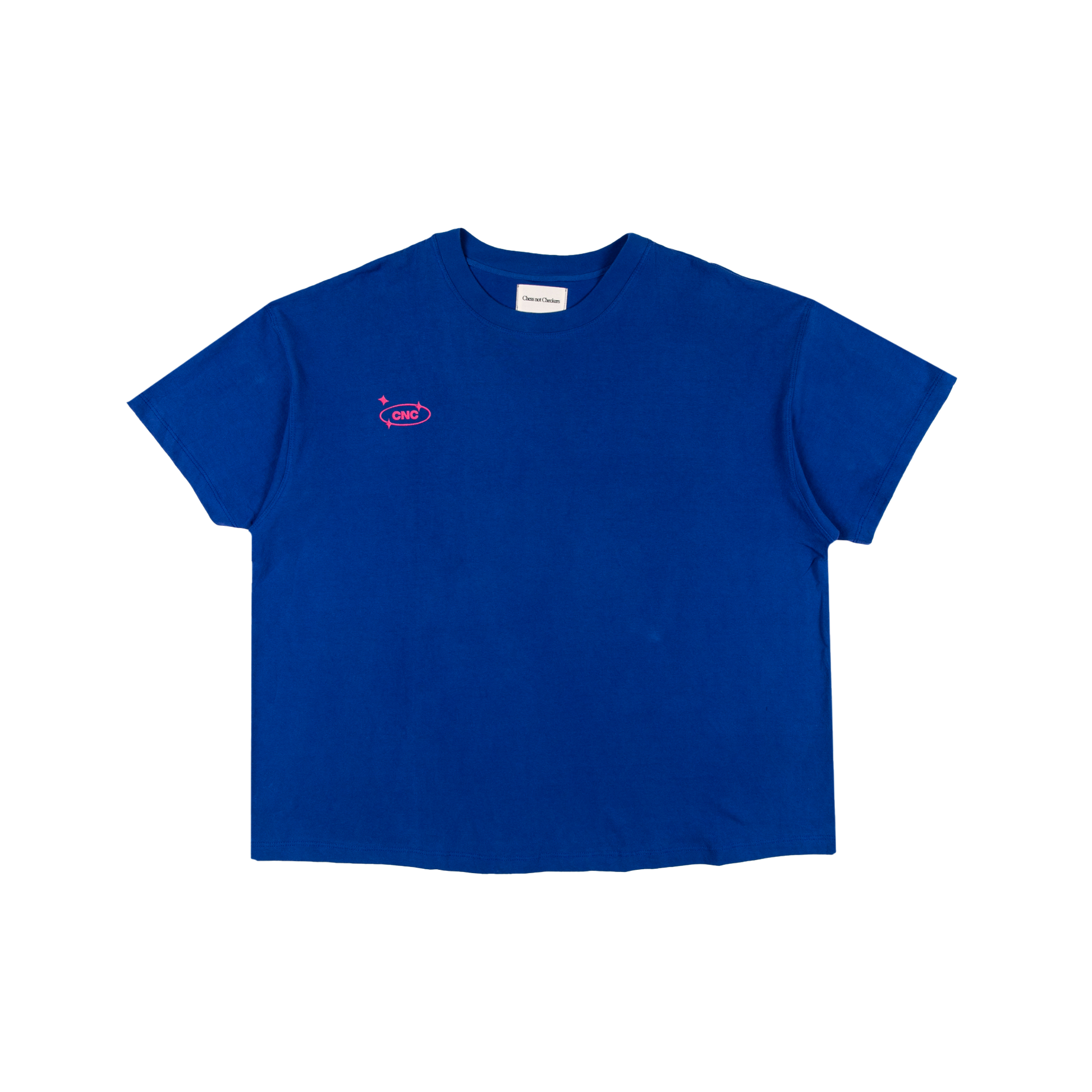This soft cotton t-shirt offers a relaxed fit with drop shoulders for a comfortable everyday silhouette, complete with our minimalistic logo. The contrasting fuchsia pink against the navy backdrop creates a color-clashing moment that adds a pop to any outfit.