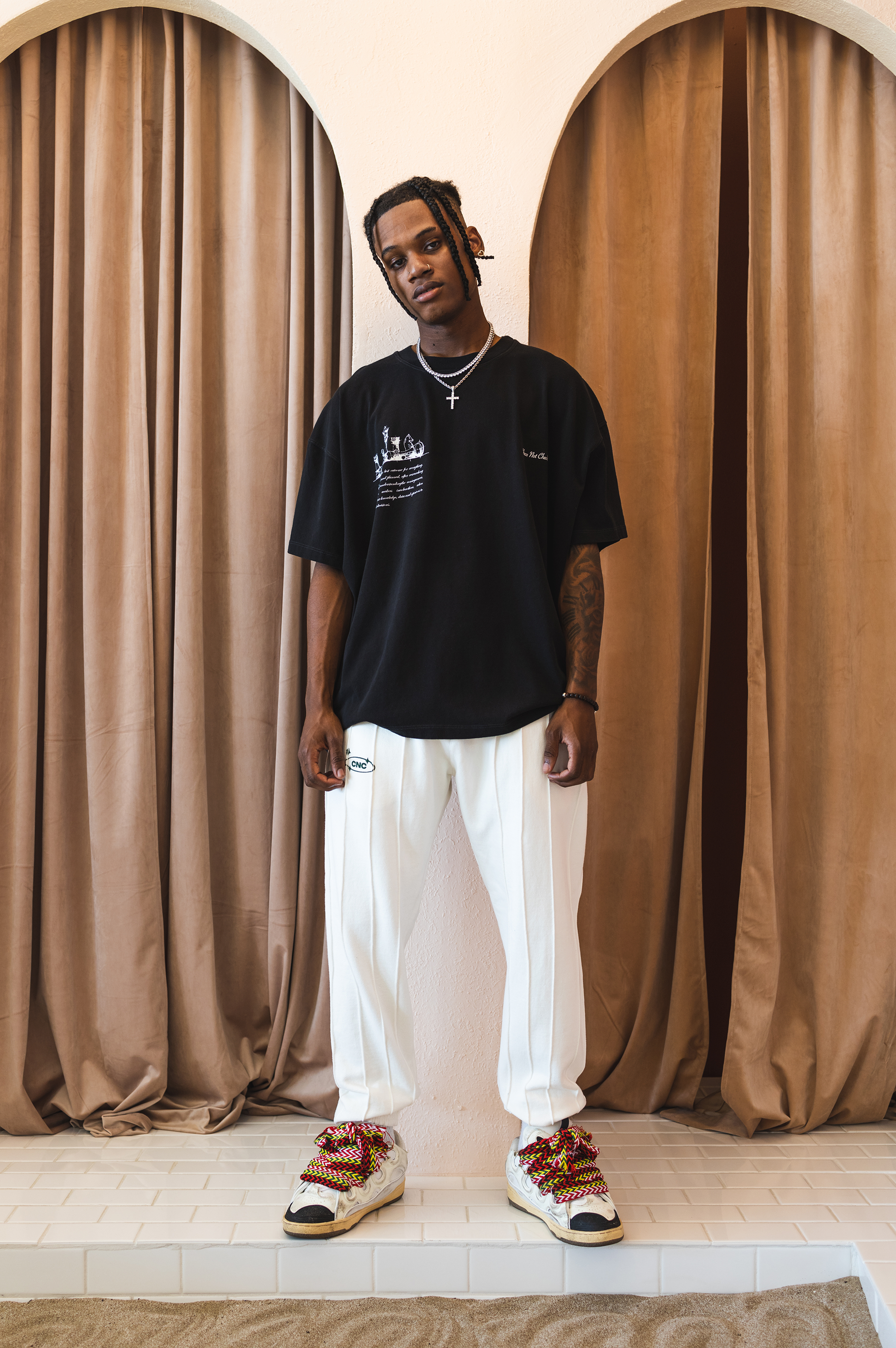 This t-shirt is proudly made in Los Angeles – from the fabric milling to the printing and sewing. Finish off your outfit with our coordinating pullover hoodie and joggers in ‘cloud dancer’ for a three-piece tracksuit look. The cotton is already preshrunken and washed prior to sewing & printing to minimise shrinkage.